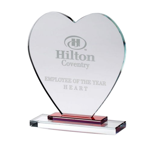 Express appreciation and admiration with this stunning Clear Glass Heart featuring a vibrant red stepped base.